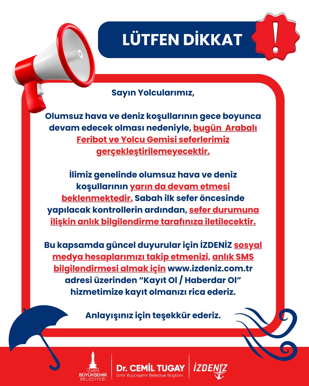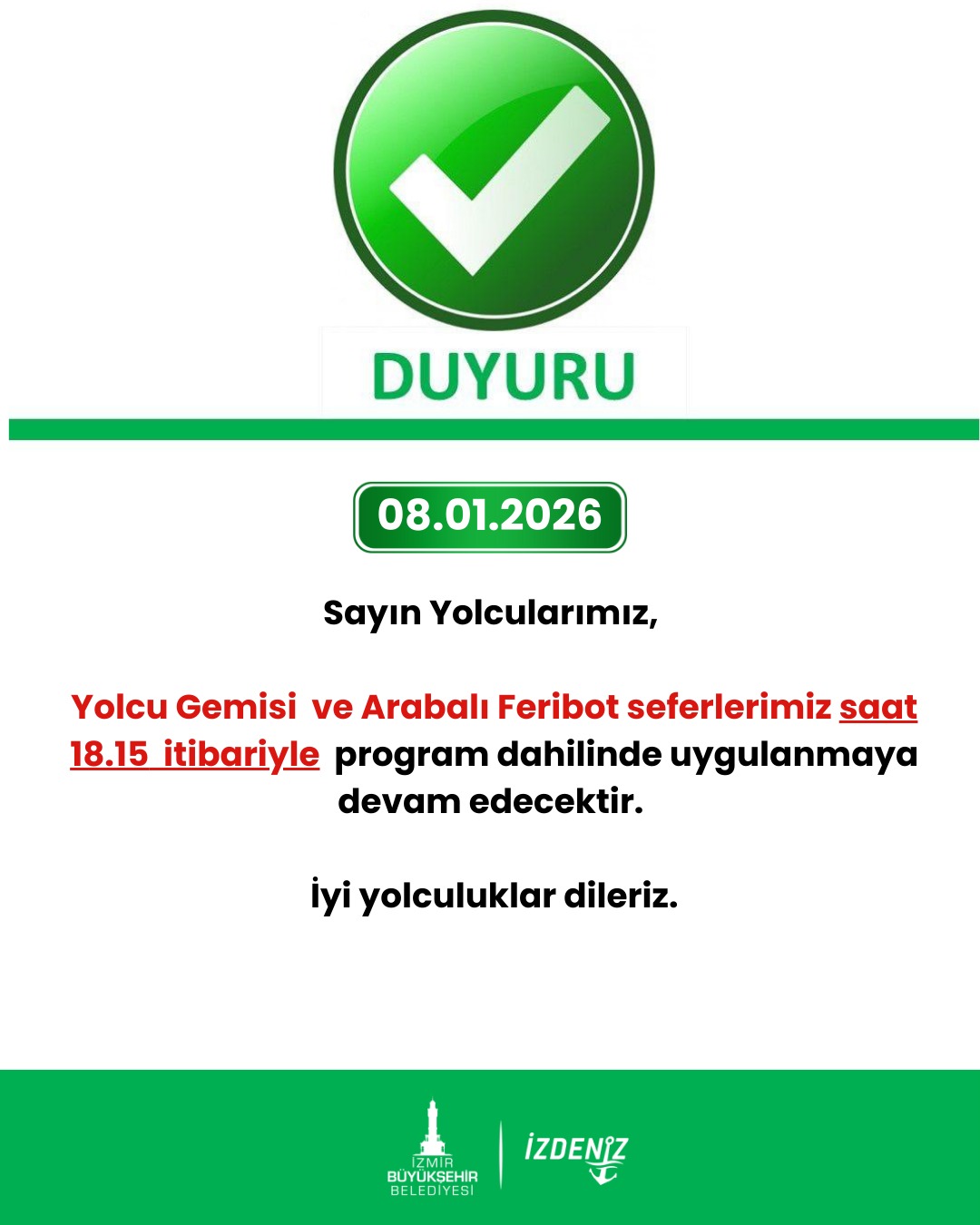 İZDENİZ A.Ş. ile ilgili güncel duyuru, ek sefer ve sefer iptallerinden sms yoluyla haberdar olmak için lütfen formu doldurunuz.