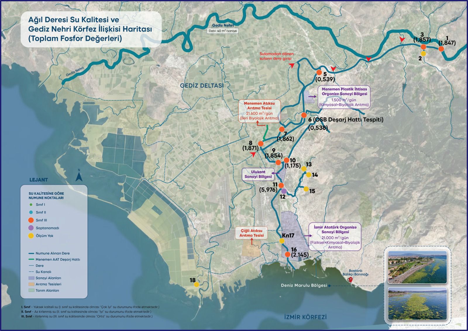 Ancak Körfez’deki sorun yalnızca denizin içinde oluşan bir problem değildir. Bilimsel çalışmalar ve saha verileri, Körfez’e taşınan kirliliğin önemli bir bölümünün Gediz Nehri havzasından geldiğini ortaya koymaktadır.