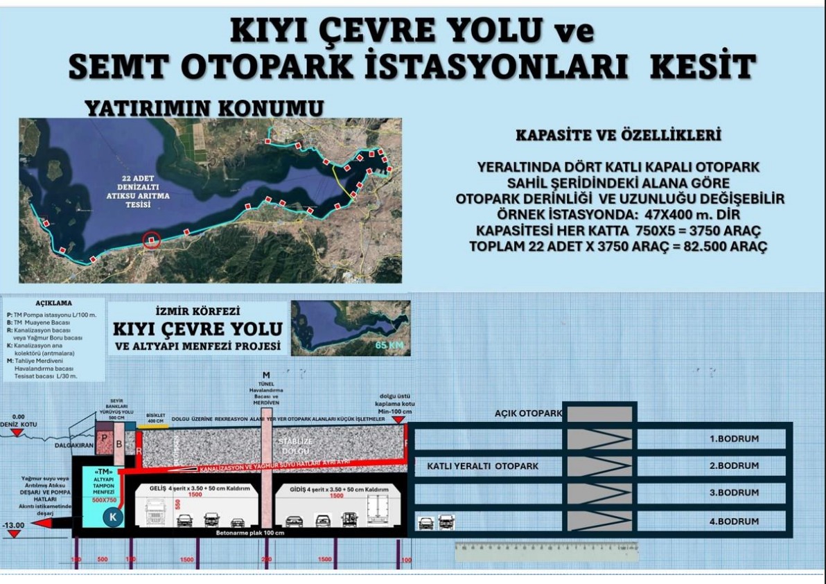 Körfez kıyı hattı boyunca önerilen 65 km uzunluğunda ve 40 metre genişliğindeki tünel ile deniz altına inşa edilmesi planlanan 22 noktadaki arıtma tesisi ve otopark projeleri; zemin mekaniği, deniz ekolojisi ve şehircilik ilkeleri açısından açık bir mühendislik skandalıdır. Bu ölçekteki müdahalelerin yaratacağı geri dönüşü olmayan ekolojik yıkımın görmezden gelinmesi kabul edilemez.